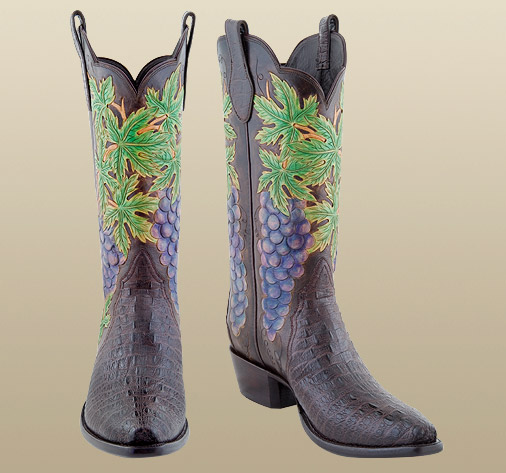 Napa Chocolate Horned-back Lizard with tooled uppers, extra fancy scallop, D pulls in HB Lizard, X toe, #4Mheel.