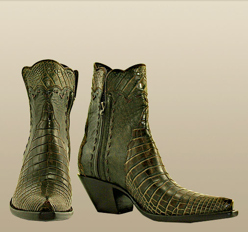 Berlin - Green Goblin kid upper with Gold Vintage Crocodile vamp, foxing and collar. Fancy scallop, contrasting Buckstitch on sides and around collar. X 5/8” toe, #6RL heel.