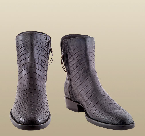 Lucerne Full Dark Chocolate soft-tanned Alligator/Crocodile one piece Zorro. Stove scallop, C toe, #2-1” heel.