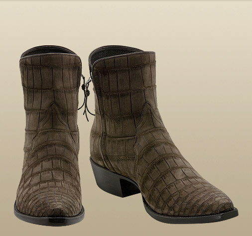 Chocolate suede Crocodile, straight scallop, X 5/8" toe, #5M heel.
