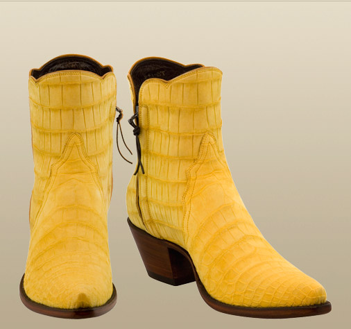 Buttercup suede Crocodile, fancy scallop, X toe, #6RL heel.