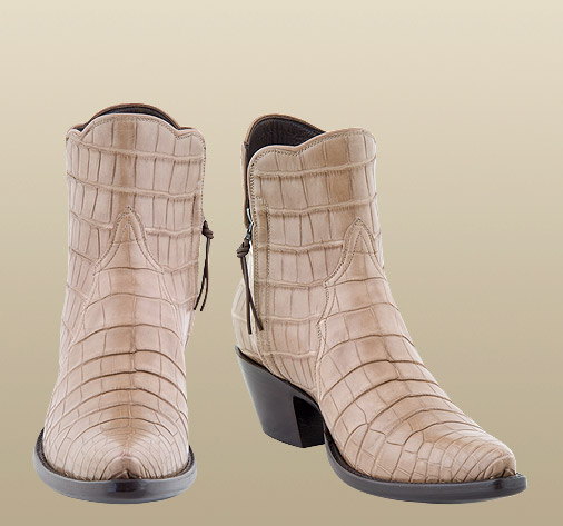 Taupe Crocodile Zorro, fancy scallop, X toe, #6RL heel.