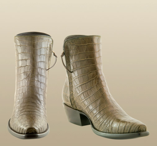 Vienna 2 Full Light Olive soft-tanned Alligator/Crocodile one piece Zorro. Stove scallop, X ¾” toe, #5RM heel.